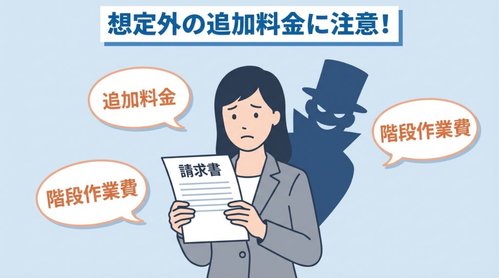 実際に依頼すると、以下のような名目で追加料金が発生することがあります。
